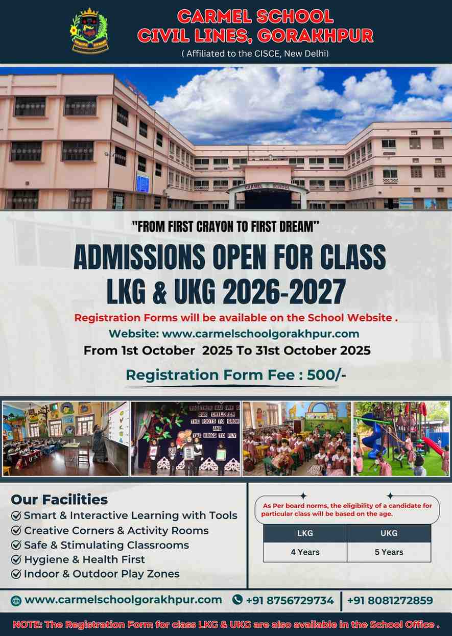 Carmel School, started on 21st January 1941, then known as St. Mary’s School in Civil Lines, Gorakhpur, is a Christian English Medium School, affiliated to the Board of Council for the Indian School Certificate Examinations, New Delhi, on 7th August 2005.